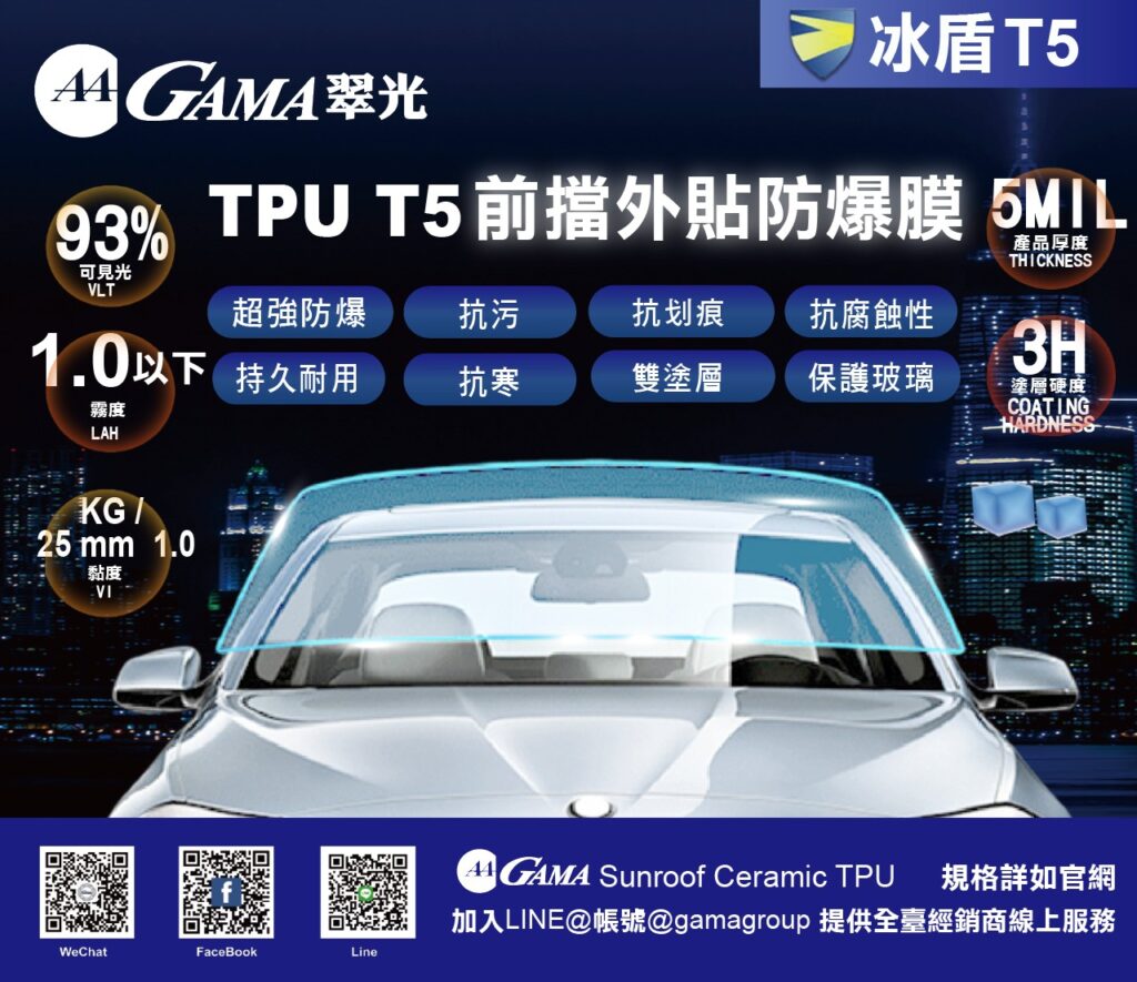 GAMA冰盾外貼膜T5是具有防爆玻璃的外貼防護罩,它具有吸收極高的衝擊力特性,可以有效阻止在高速行駛